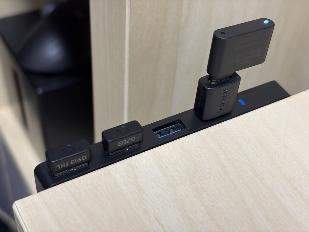 usb-cを挿せるハブを持っていなかったので変換アダプタを使ったけど安定して接続できている。おまけに他の無線デバイスのトランシーバーを挿しているけど、特に干渉せず。